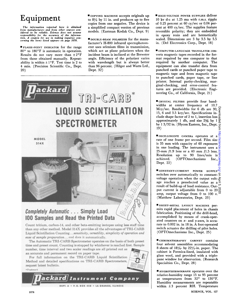Equip ENT The information reported here is obtained front manufacturers and from other sources considered to be reliable. Science does not assume responsibility for the accuracy of the information.