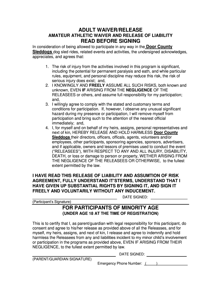 ADULT WAIVER/RELEASE