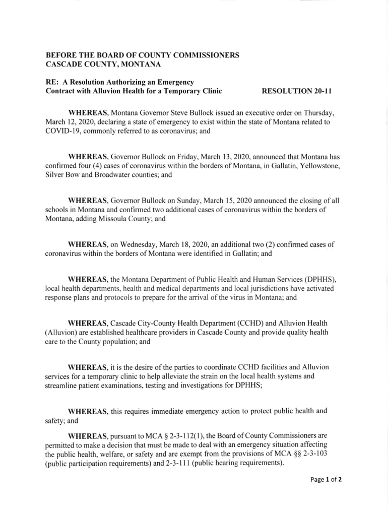 CASCADE COUNTY, MONTANA: A Resolution Authorizing an Emergency