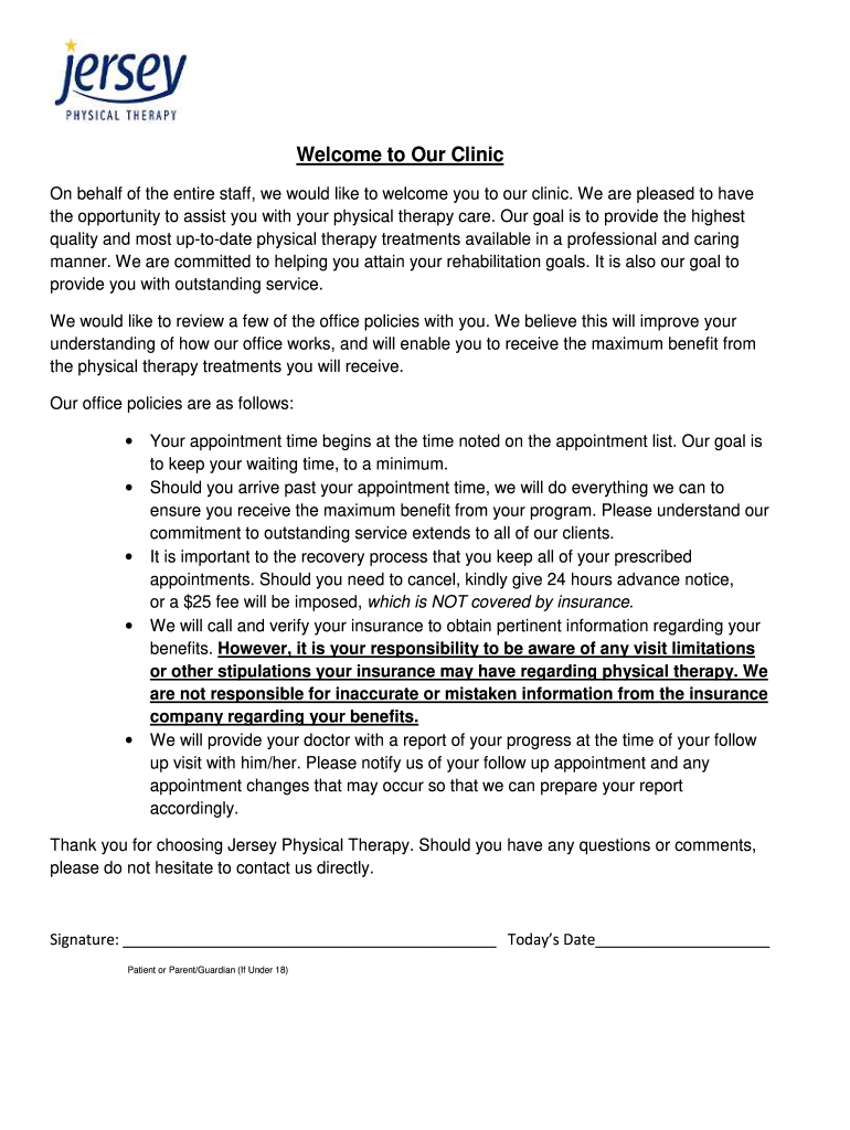 the opportunity to assist you with your physical therapy care. Our goal is to