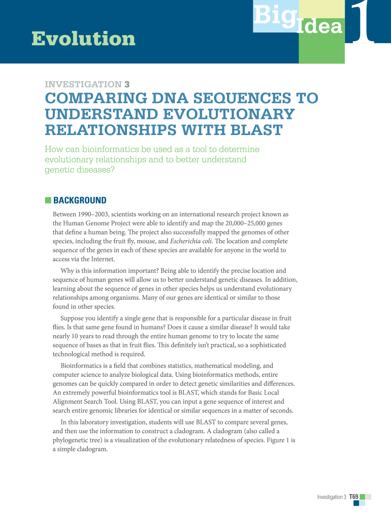 EvolutionBigIdea1investigation 3Comparing DNA Sequences to