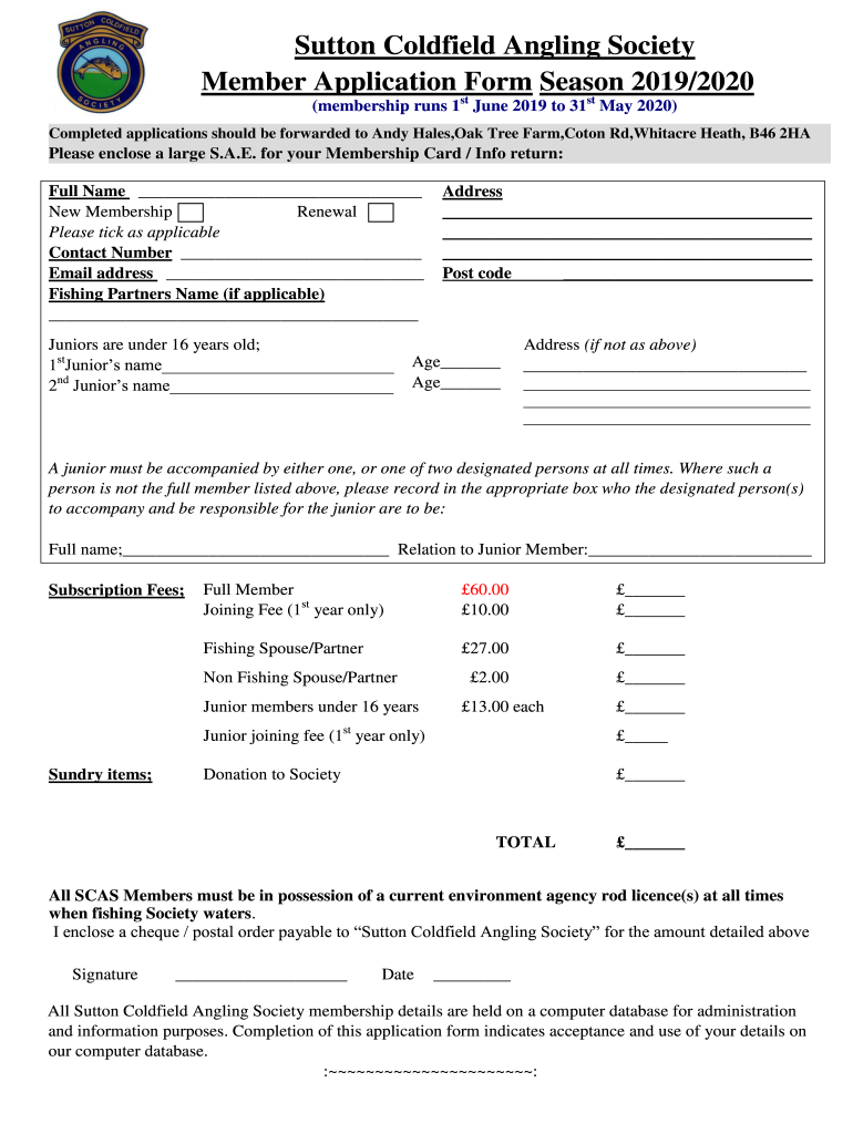 Get the free Sutton Coldfield Angling Society Member Application Form ...
