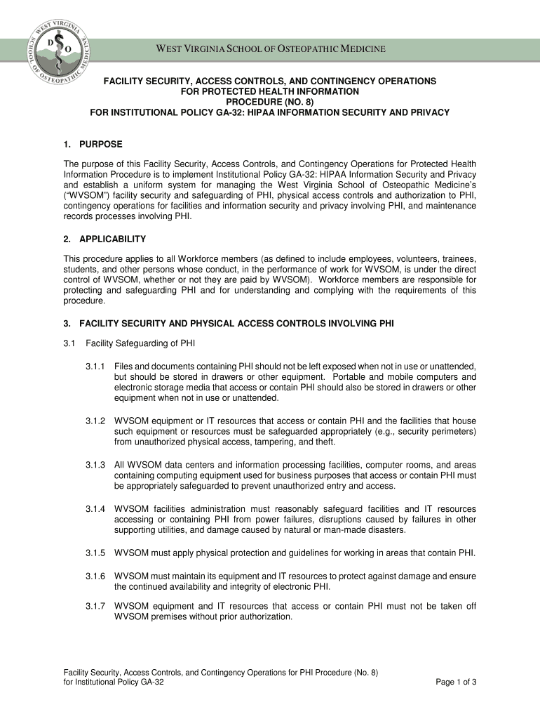 FACILITY SECURITY, ACCESS CONTROLS, AND CONTINGENCY OPERATIONS