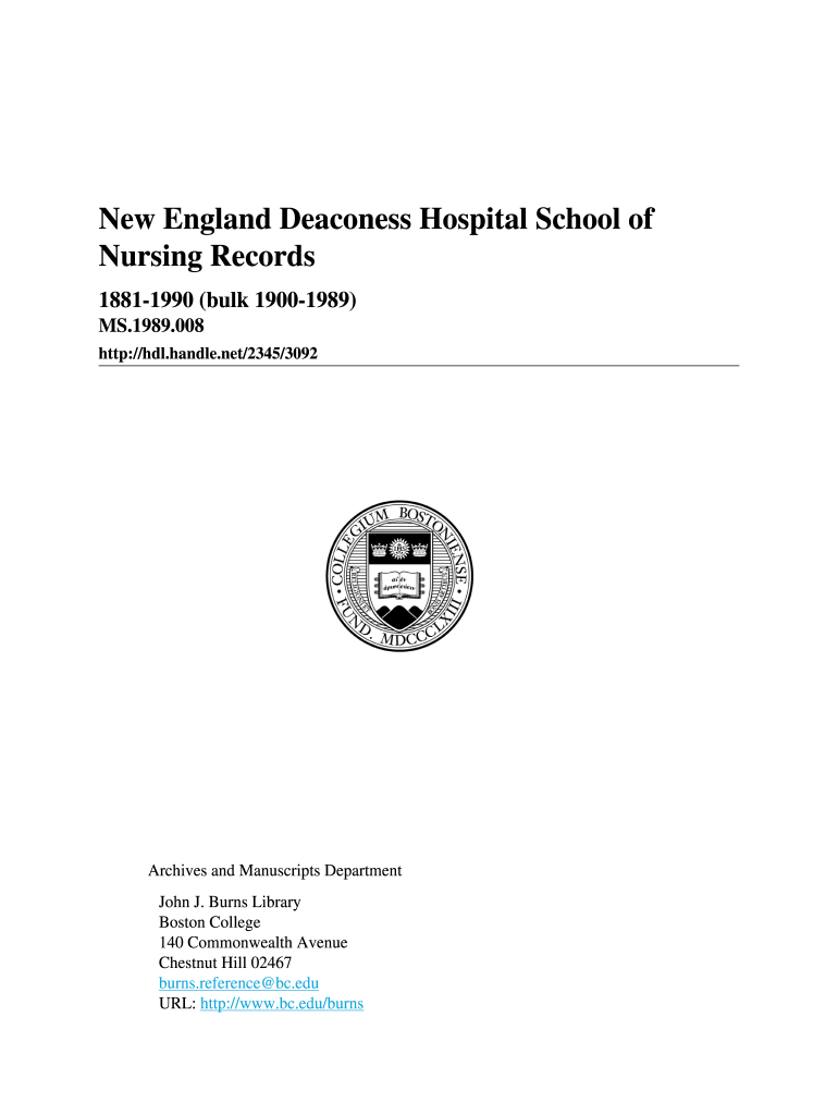 New England Deaconess Hospital School of Nursing Records 18811990 (bulk 19001989) MS.1989.008 http://hdl.handle.net/2345/3092Archives and Manuscripts Department John J. Burns Library Boston College