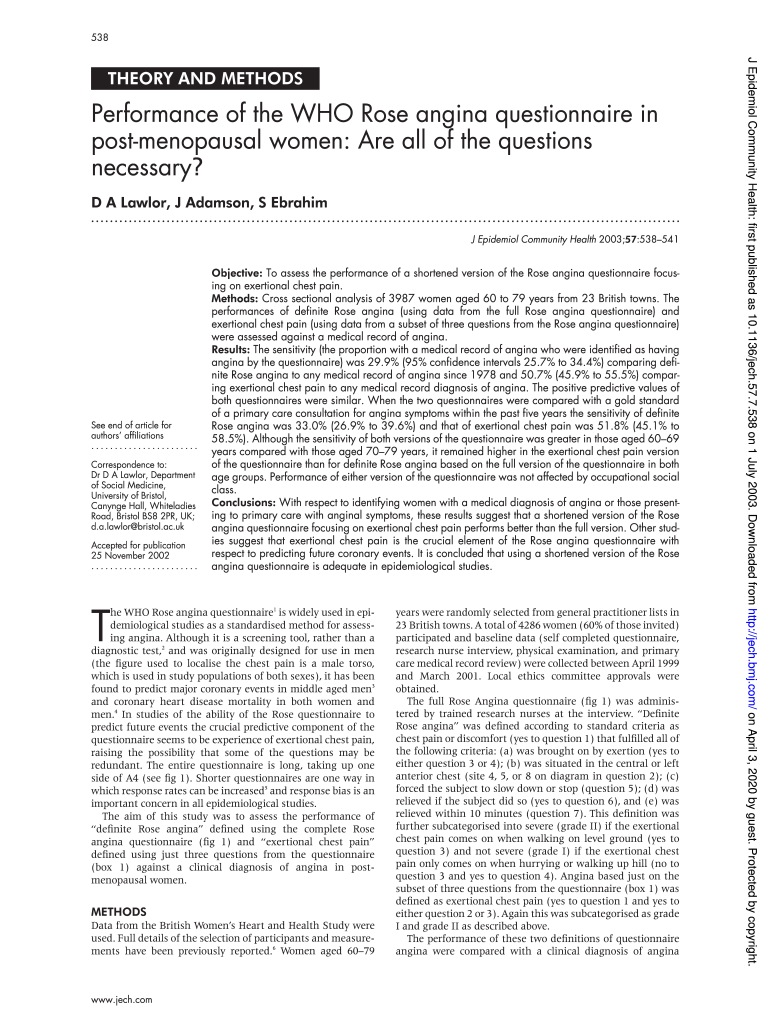 Get the free Performance of the WHO Rose angina questionnaire in post ...