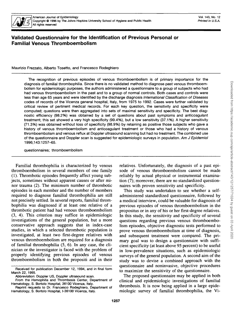 All rtght3 reserved. 143, No. 12Printed In U.SA. Validated Questionnaire for the