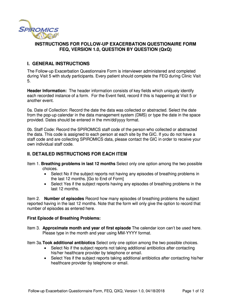 INSTRUCTIONS FOR FOLLOWUP EXACERBATION QUESTIONNAIRE FORM