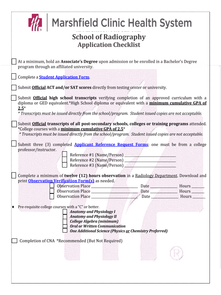MANSFIELD CLINIC HEALTH SYSTEMSCHOOL OF RADIOGRAPHYInformation & Application Handbook20192020Division of Education School of Radiography 1000 North Oak Avenue Marsh field, WI 544495777(715)3879254