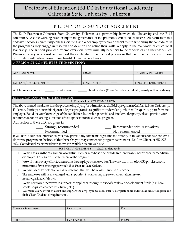 The Ed. D. Program at California State University, Fullerton is a partnership between the University and the P 12