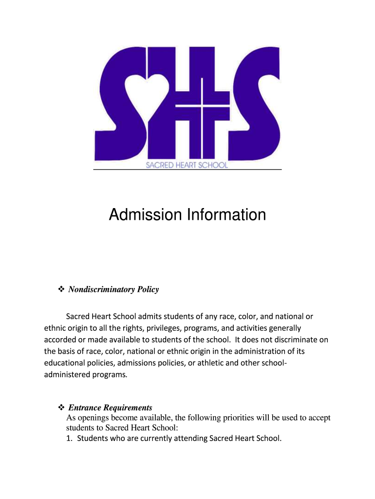 Students who wish to enroll in Sacred Heart School need the sacred heart school admits.