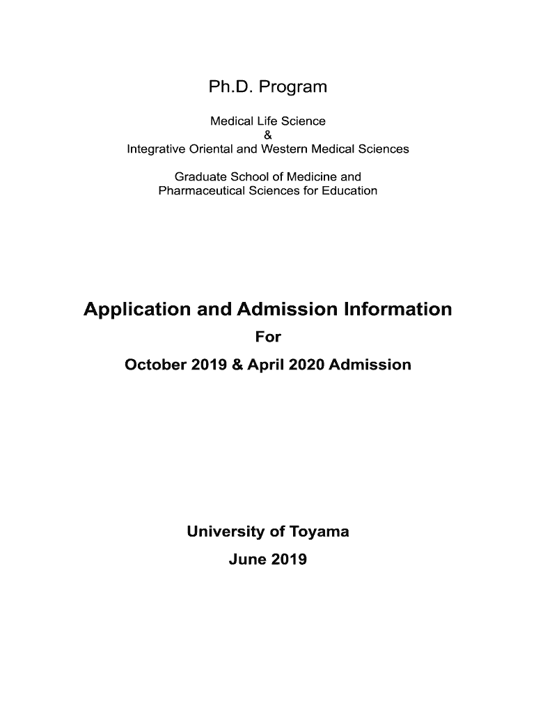 Ph.D. Program Medical Life Science & Integrative Oriental and Western Medical Sciences Graduate School of Medicine and Pharmaceutical Sciences for EducationApplication and Admission Information For