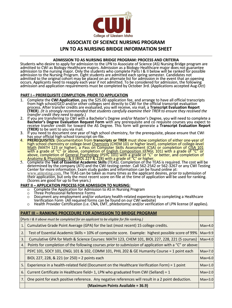 ASSOCIATE OF SCIENCE NURSING PROGRAM LPN TO AS NURSING BRIDGE INFORMATION SHEET ADMISSION TO AS NURSING BRIDGE PROGRAM: PROCESS AND CRITERIA Students who desire to apply for admission to the LPN to