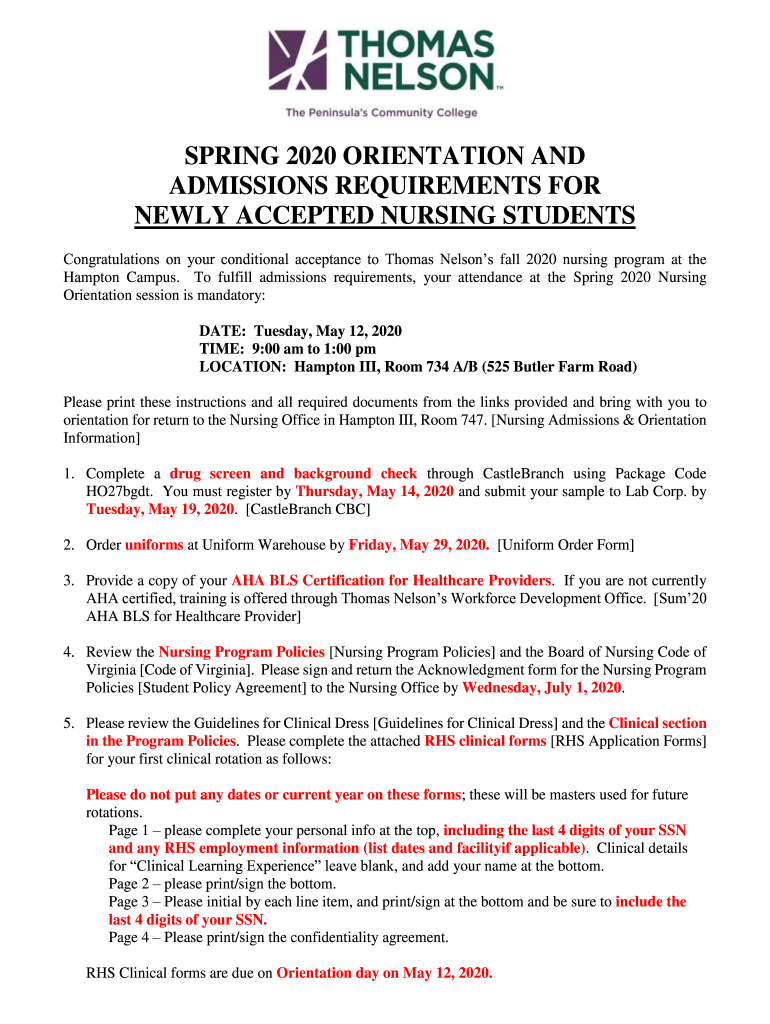 Congratulations on your conditional acceptance to Thomas Nelsons fall 2020 nursing program at the