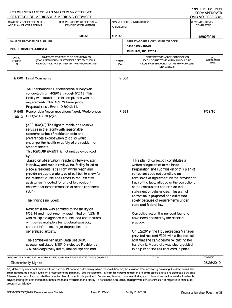 PRINTED: 06/10/2019 FORM APPROVEDDEPARTMENT OF HEALTH AND HUMAN SERVICES CENTERS FOR MEDICARE & MEDICAID SERVICES STATEMENT OF DEFICIENCIES AND PLAN OF CORRECTION(X1) PROVIDER/SUPPLIER/CIA IDENTIFICATION