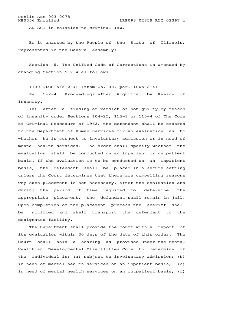 HB0056 EnrolledLRB093 02359 RLC 02367 ban ACT in relation to criminal law. Be it enacted by the People oftheStateofIllinois, represented in the General Assembly:Section5. The Unified