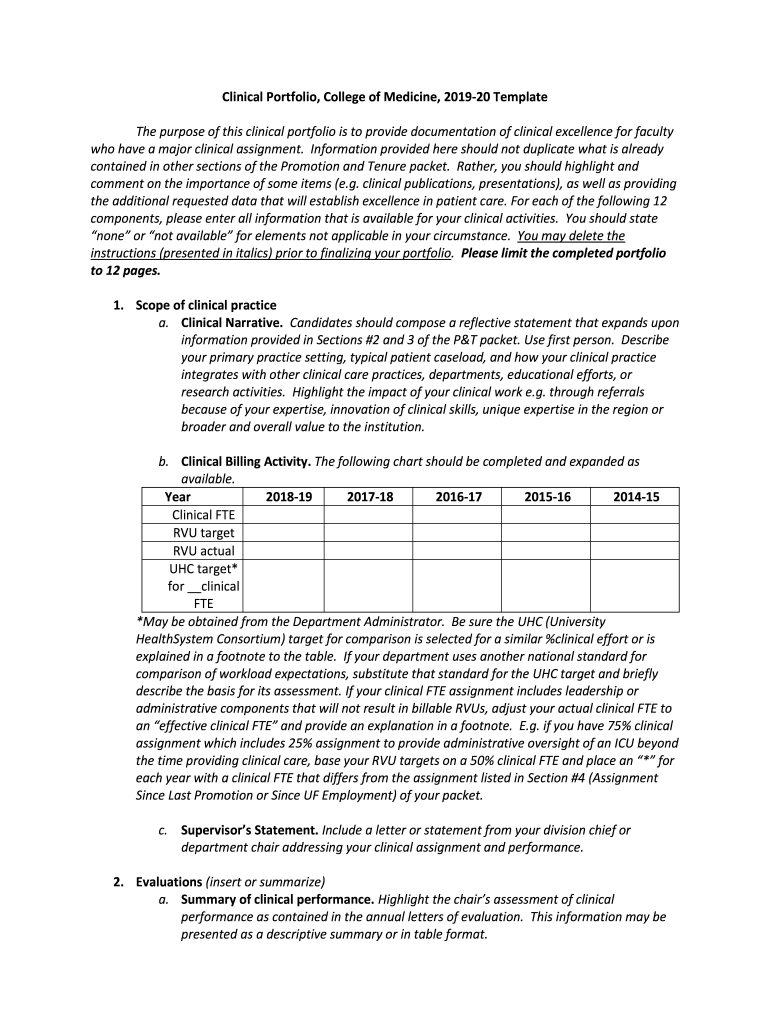 Clinical Portfolio, College of Medicine, 201920 Templates