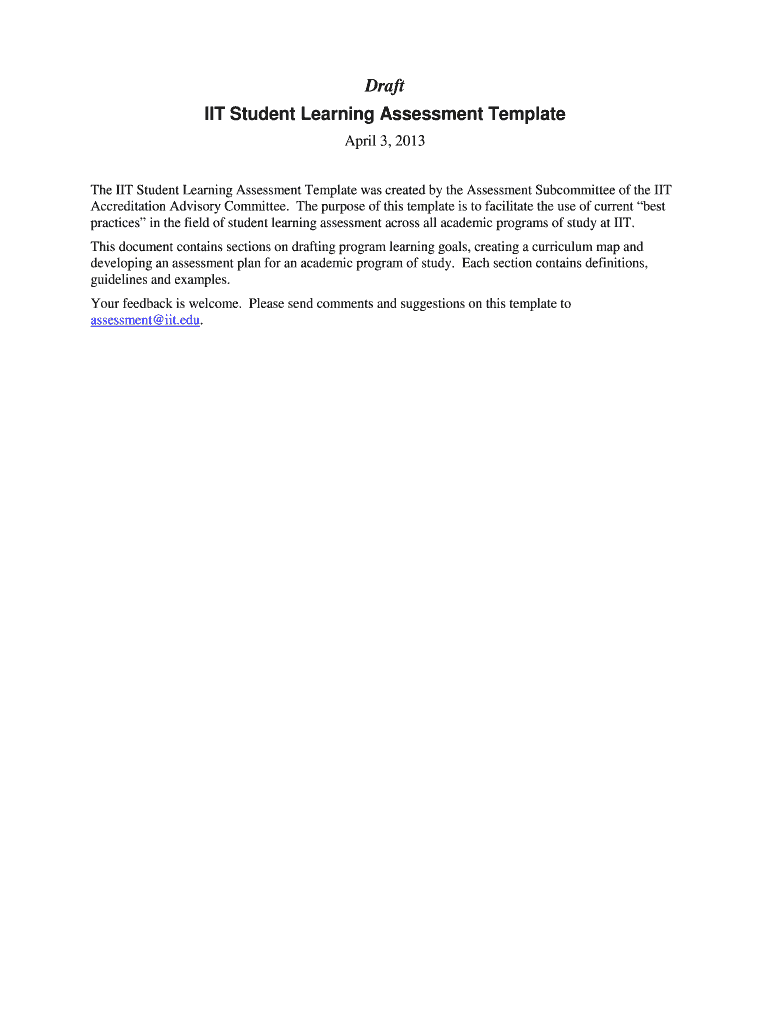 Get the free Draft IIT Student Learning Assessment Template