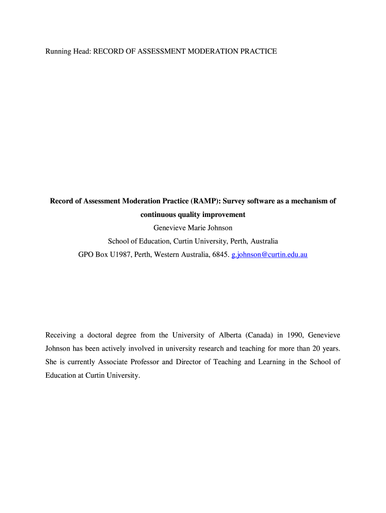 Running Head: RECORD OF ASSESSMENT MODERATION PRACTICERecord of Assessment Moderation Practice (RAMP): Survey software as a mechanism of