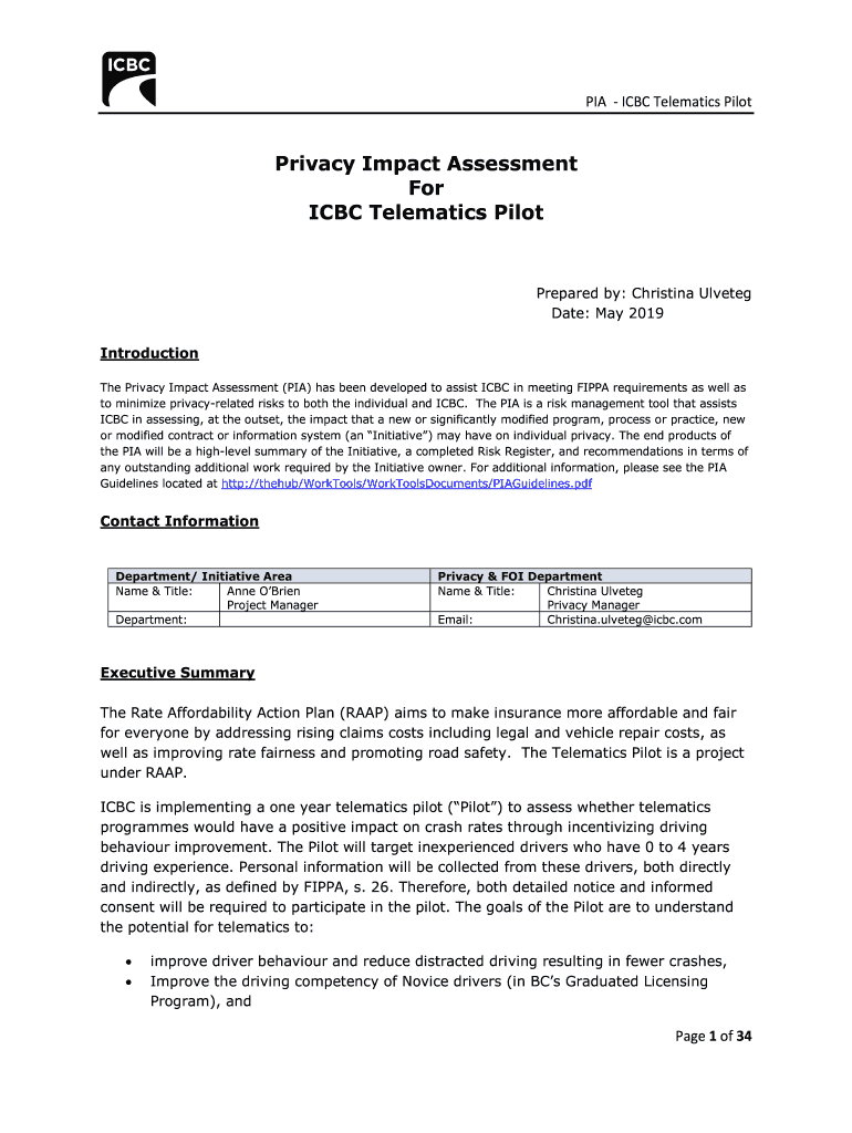 Get the free Privacy Impact Assessment For ICBC Telematics Pilot