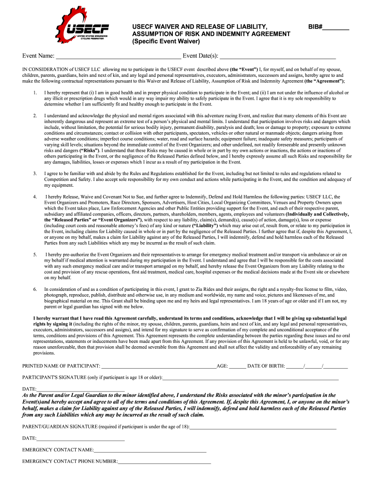 What is usecfampampwaiverampampandampampreleaseampampofliabilityampampampamp ampamp bib ampamp?