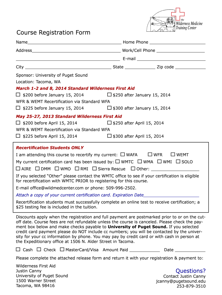 Wilderness Medicine Training Intercourse Registration FormWildMedCenter. Compare Home Phone Address Work/Cell Phone Email City State Zip code Sponsor: University of Puget Sound Location: Tacoma, WA