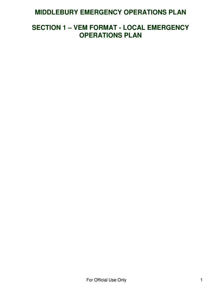 MIDDLEBURY EMERGENCY OPERATIONS PLAN SECTION 1 OEM FORMAT LOCAL EMERGENCY OPERATIONS Platform Official Use Only1LOCAL EMERGENCY OPERATIONS PLANMIDDLEBURYEmergency Steps 1) Establish an Incident Command
