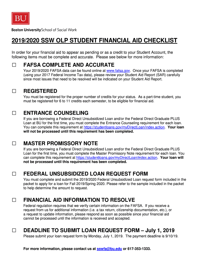 2019/2020 SSW OLP STUDENT FINANCIAL AID CHECKLIST