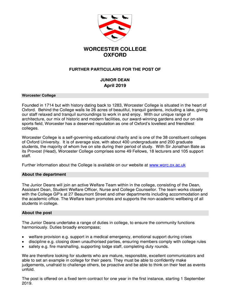 Worcester CollegeFounded in 1714 but with history dating back to 1283, Worcester College is situated in the heart