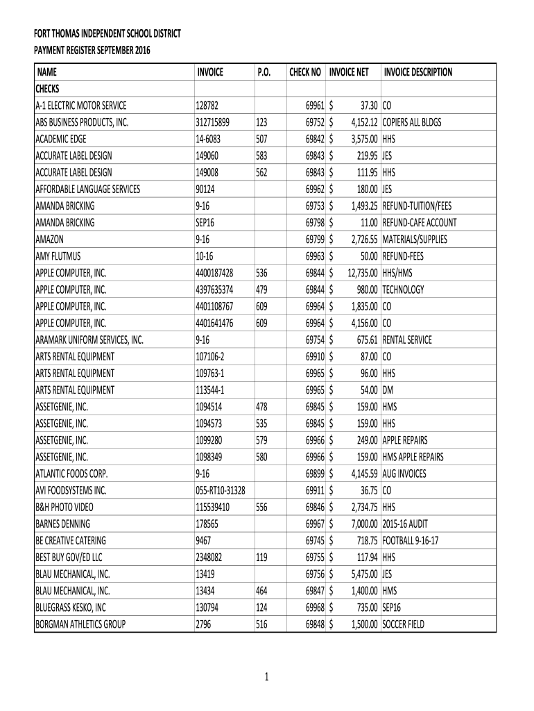 PAYMENT REGISTER SEPTEMBER 2016