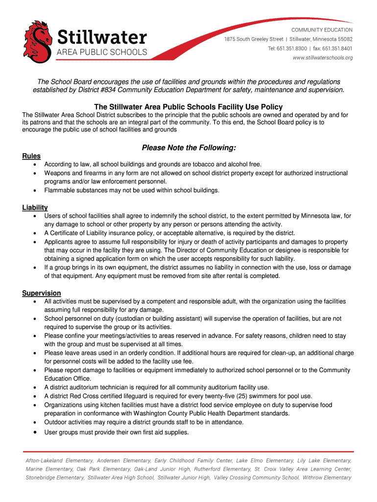 Get the free Facility Use Guidelines - Stillwater Area Public Schools