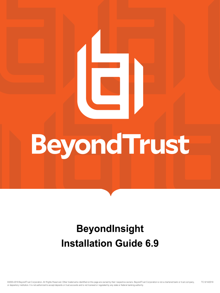 Installation Guide 6.920032019 BeyondTrust Corporation. All Rights Reserved. Other trademarks identified on this page are owned by their respective owners. BeyondTrust Corporation is