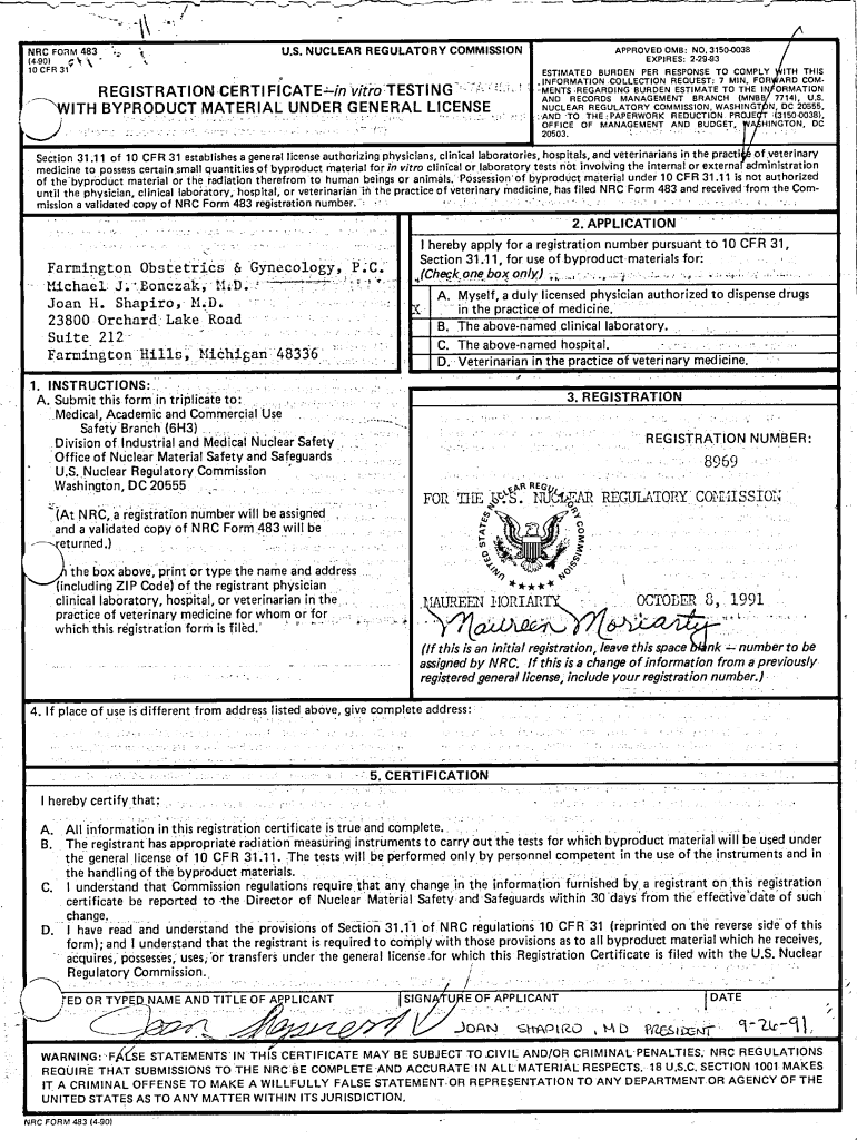 Get the free NRC Form 483 'Registration Certificate - - In Virto Testing with ...