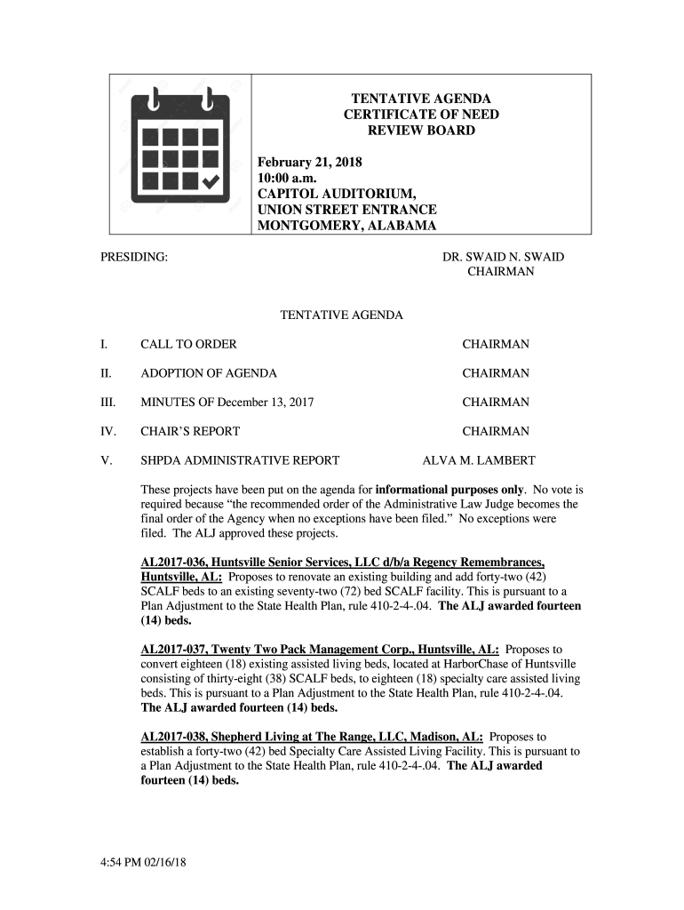 Get the free TENTATIVE AGENDA CERTIFICATE OF NEED REVIEW BOARD STATE ...