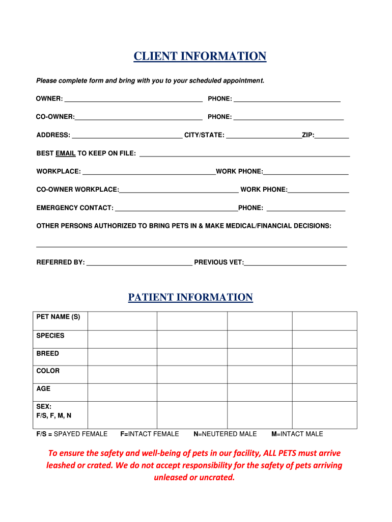 CLIENT INFORMATION Please complete form and bring with you to your scheduled appointment. OWNER: PHONE: CORNER: PHONE: ADDRESS: CITY/STATE: ZIP: BEST EMAIL TO KEEP ON FILE: WORKPLACE: WORK PHONE: