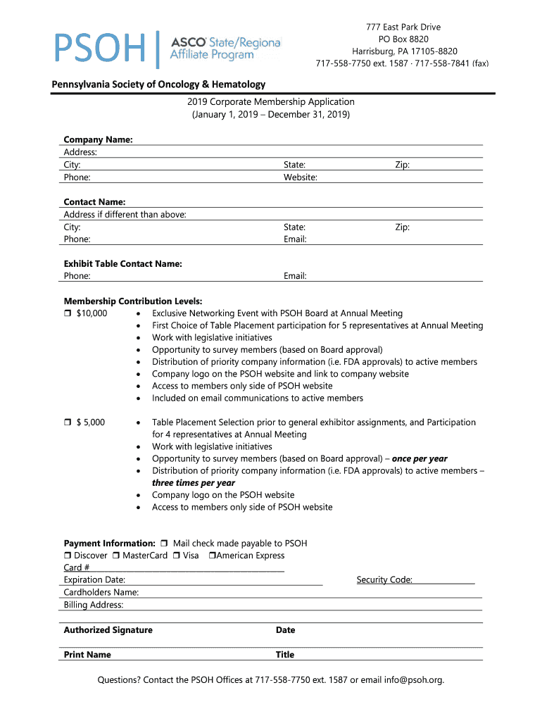 7175587750 ext. 1587 7175587841 (fax)Pennsylvania Society of Oncology & Hematology