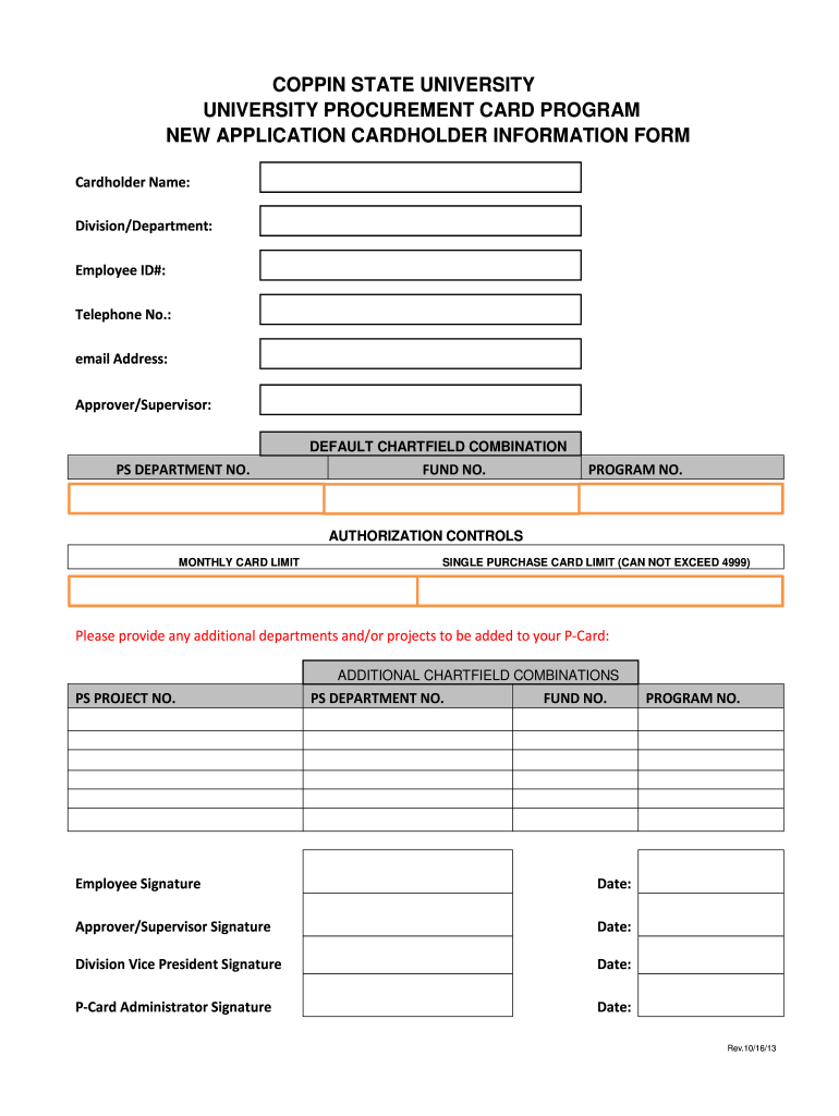 NEW APPLICATION CARDHOLDER INFORMATION FORM