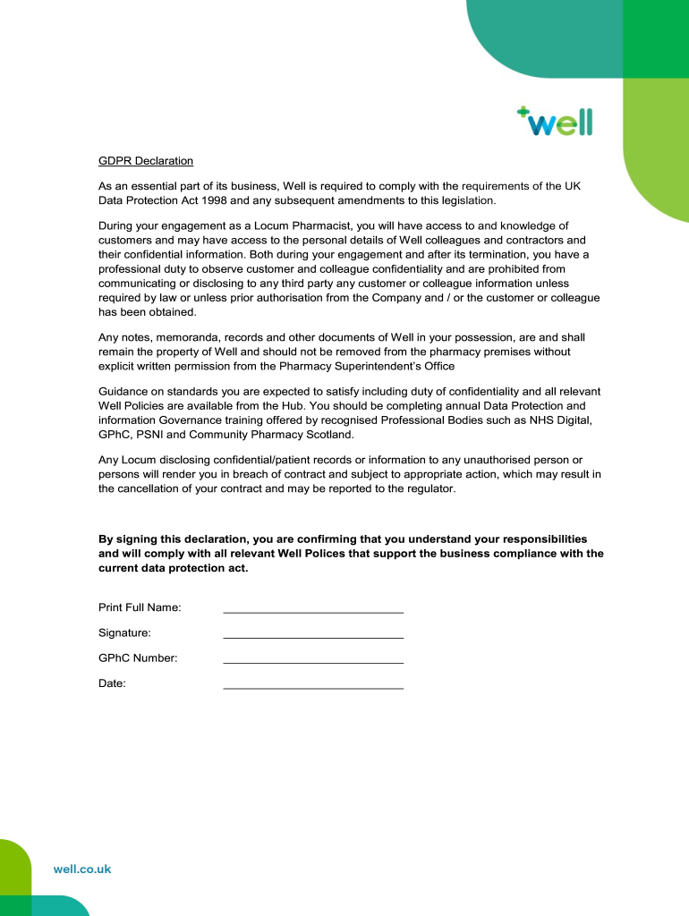As an essential part of its business, Well is required to comply with the requirements of the UK