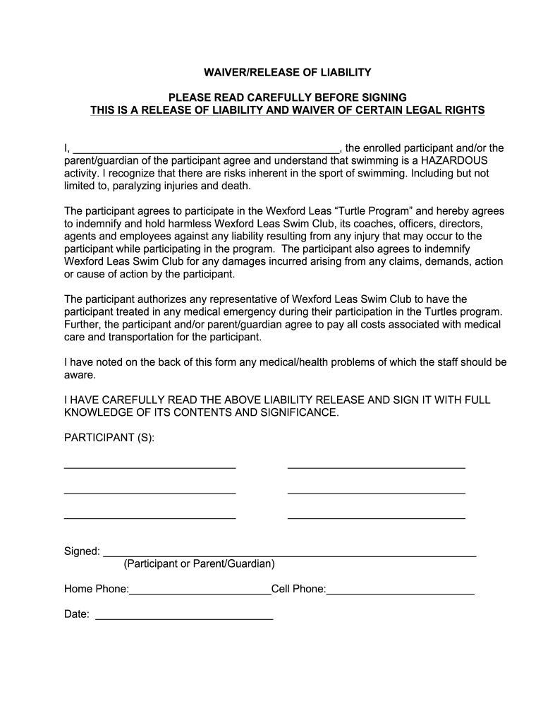 WAIVER/RELEASE OF LIABILITY PLEASE READ CAREFULLY BEFORE SIGNING THIS IS A RELEASE OF LIABILITY AND WAIVER OF CERTAIN LEGAL RIGHTS I, the enrolled participant and/or the parent/guardian of the participant