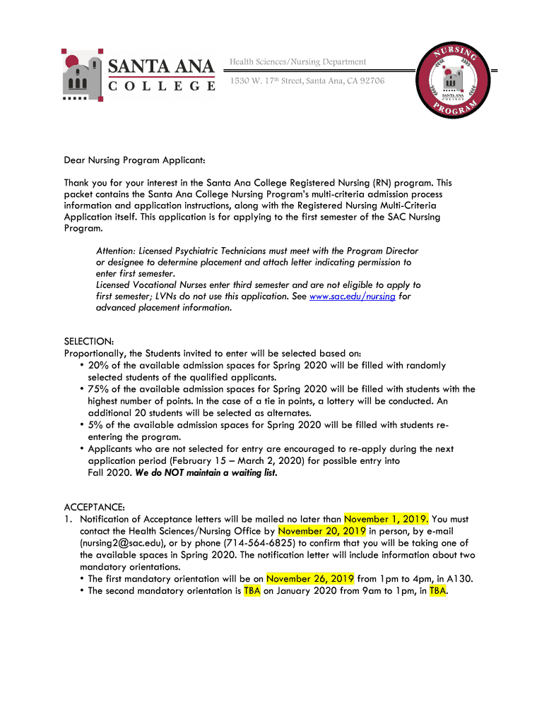 1530 W. 17th Street, Santa Ana, CA 92706Dear Nursing Program Applicant: