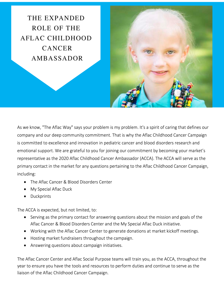 THE EXPANDED ROLE OF THE AFL AC childhood CANCER Ambassadors we know, “The Flag Way says your problem is my problem. It's a spirit of caring that defines our company and our deep community commitment.