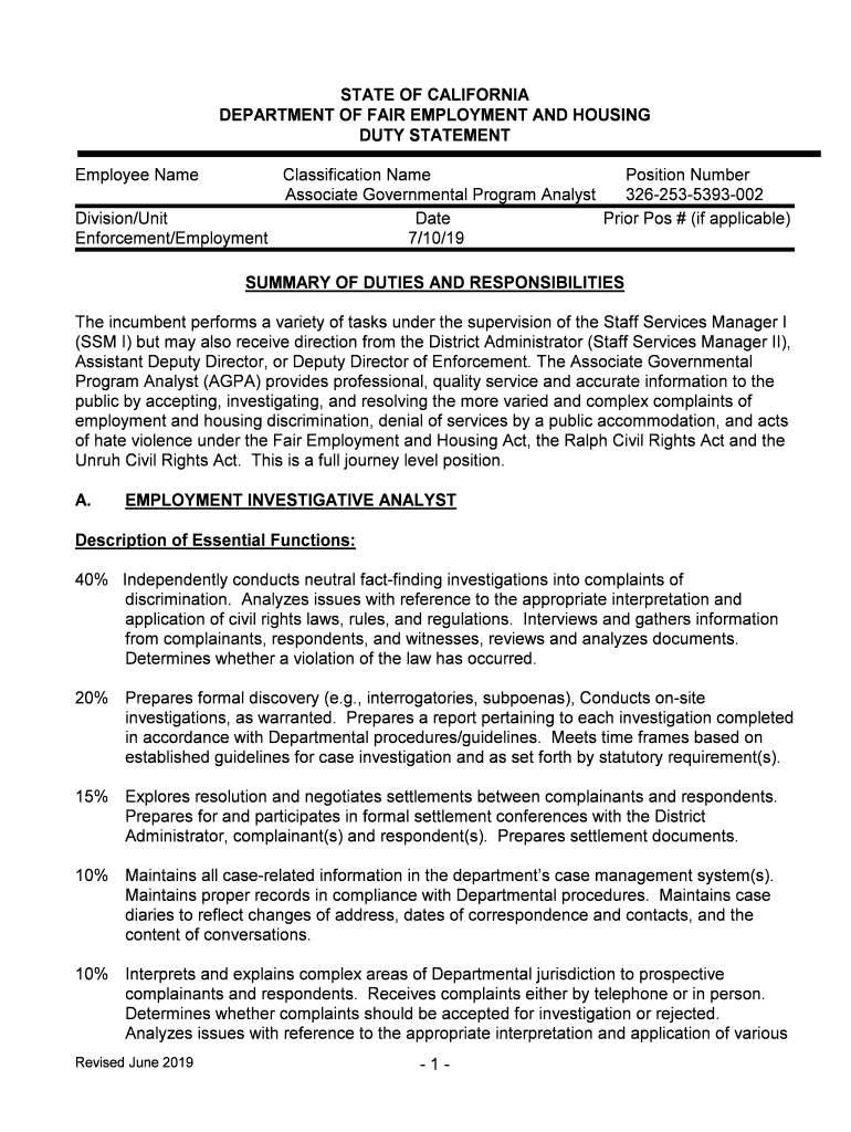 DEPARTMENT OF FAIR EMPLOYMENT AND HOUSING
