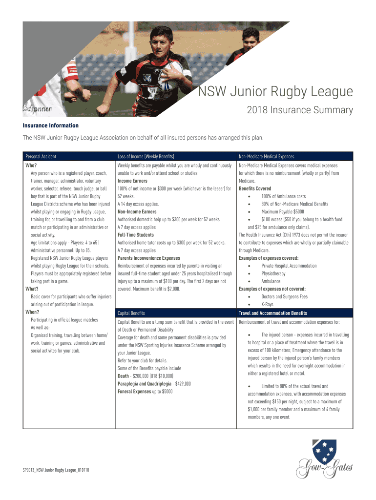 The NSW Junior Rugby League Association on behalf of all insured persons has arranged this plan.