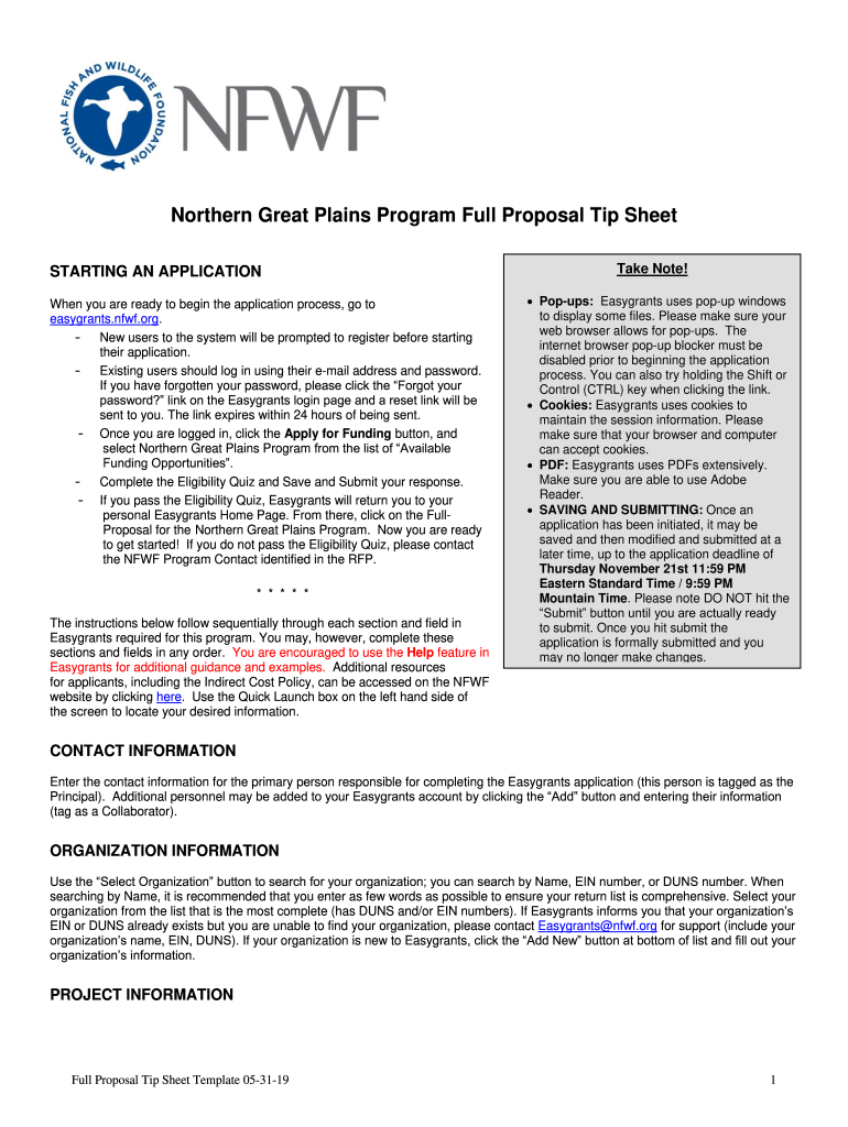 Northern Great Plains Program Full Proposal Tip Sheet STARTING AN APPLICATION When you are ready to begin the application process, go to easy grants.NFF.org. New users to the system will be prompted