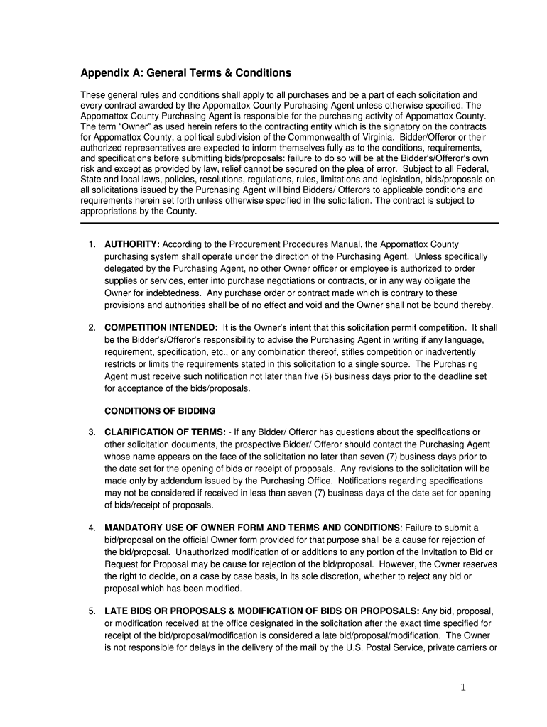 Appendix A: General Terms & Conditions These general rules and conditions shall apply to all purchases and be a part of each solicitation and every contract awarded by the Appomattox County Purchasing