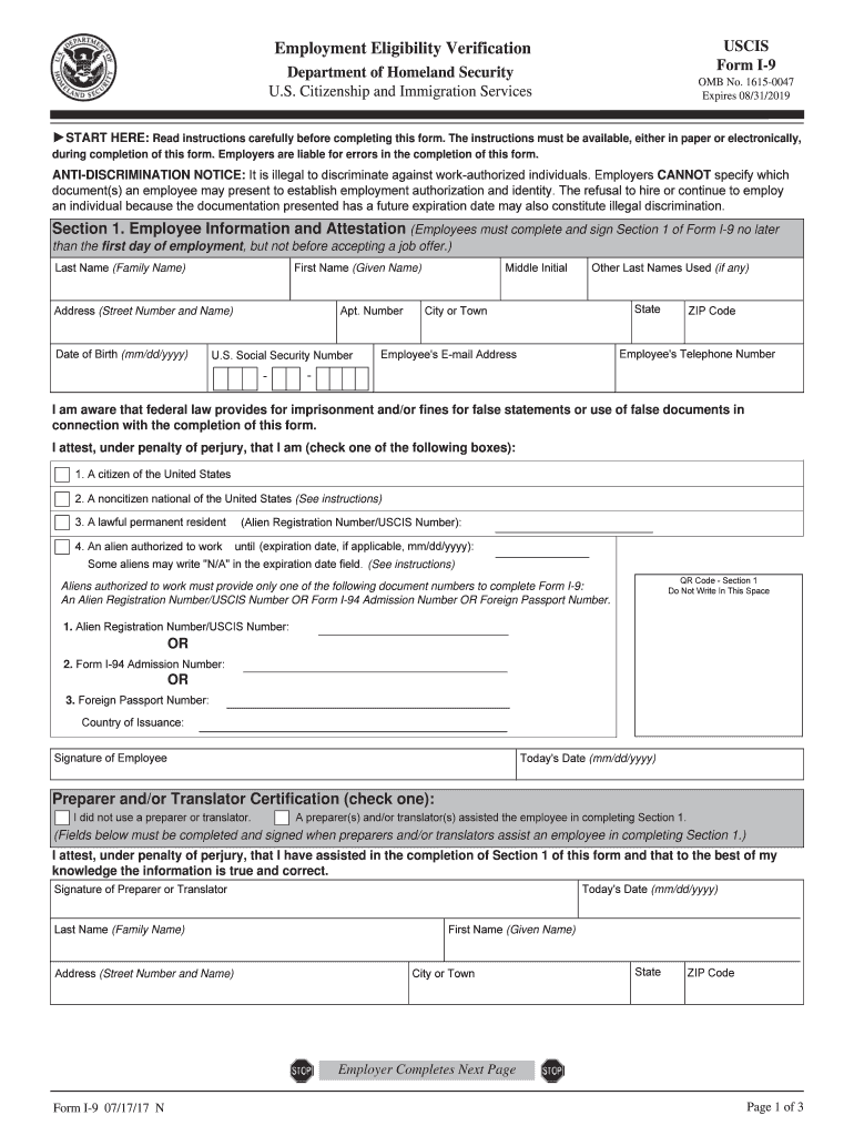 Form I9Employment Eligibility Verification