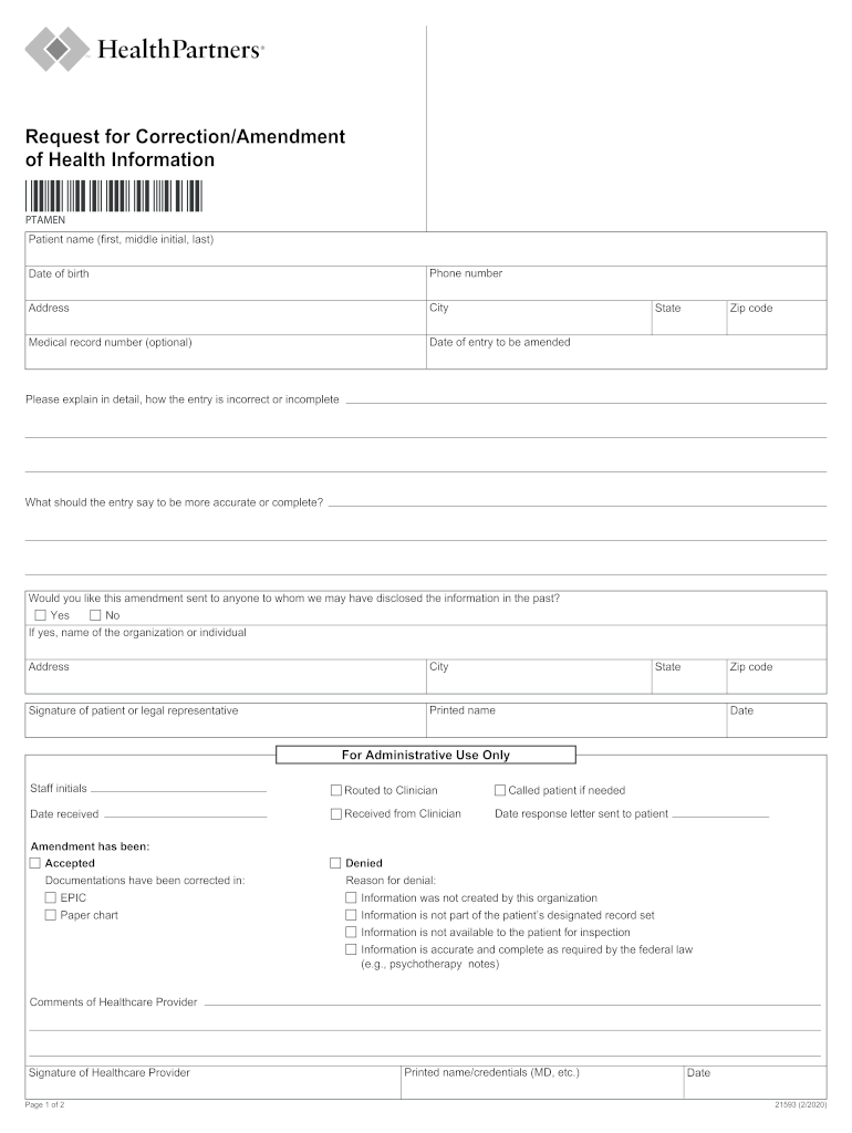 Get the free Request for Correction/Amendment of Health InformationHealthPartners. equest for Cor...