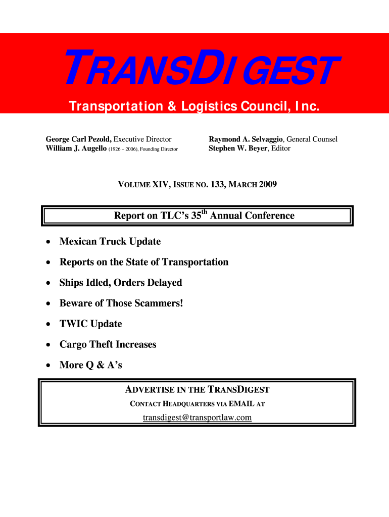 Individuals and businesses involved in transportation and logistics operations that are members of the council are typically required to file with the Transportation Logistics Council Inc.