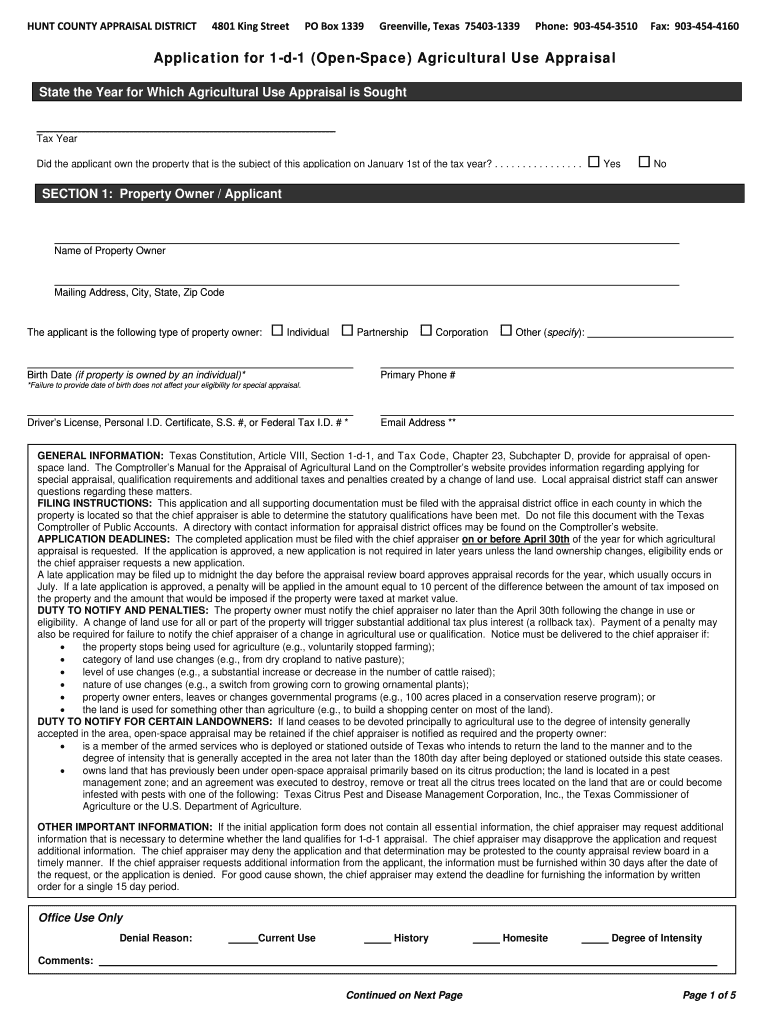 Application for 1d1 (Open Space) Agricultural Use Appraisal