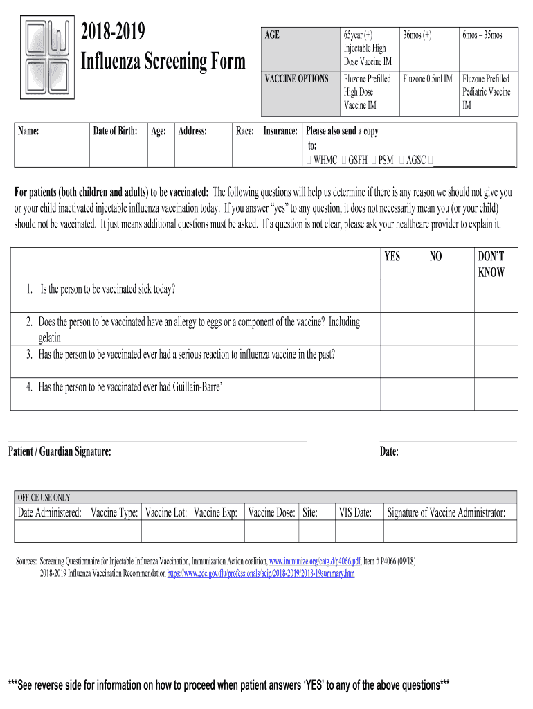 Fill out your 2018-2019 influenza screening formdoc online with pdfFiller!