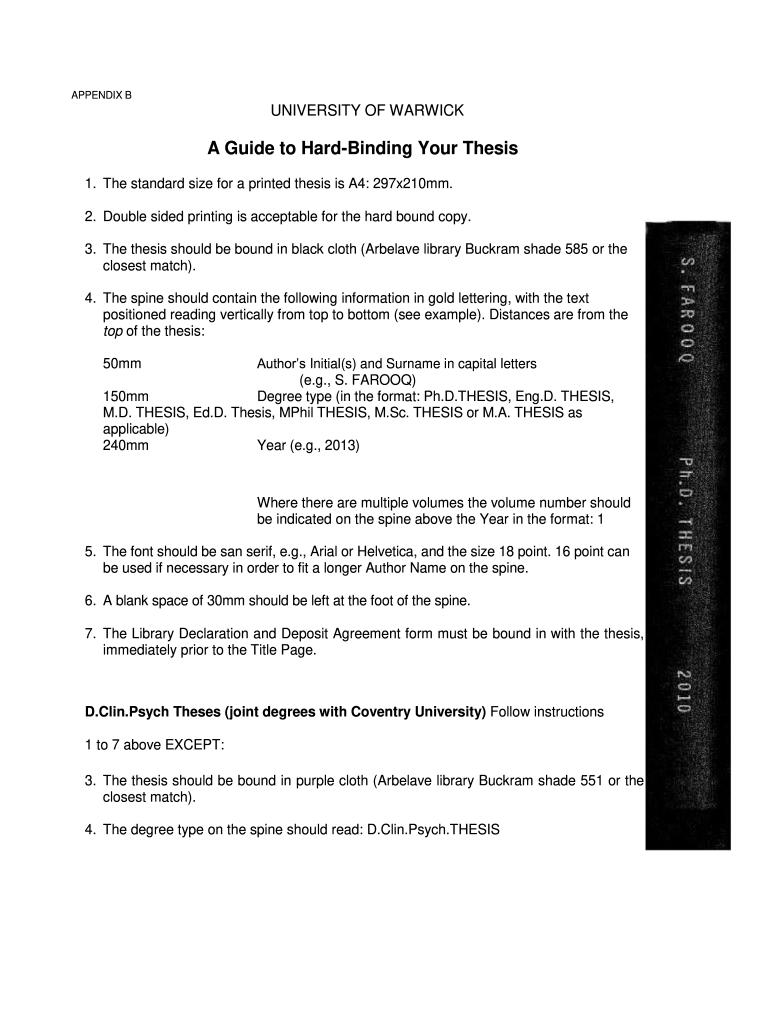 Get the free A Guide to Hard-Binding Your Thesis - University of Warwick